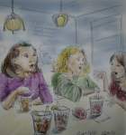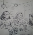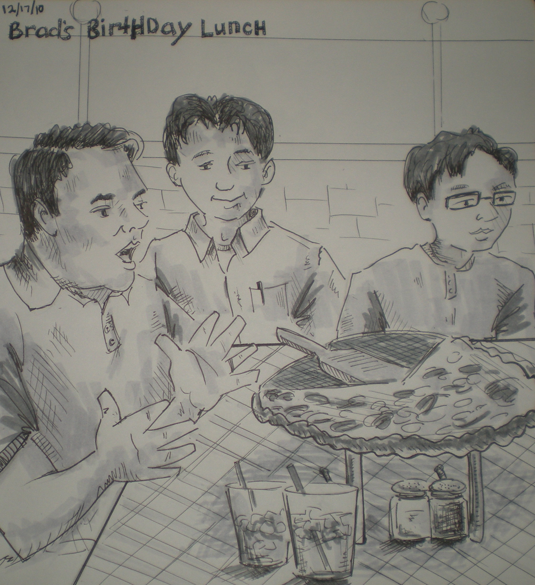 I did this sketch of my 3 friends one night at Carly’s downtown. I really kind of liked this one and wanted to give it some color, but I’m a lousy painter and was afraid that if I took a brush to it I would ruin it. So I downloaded a 30 day trial of Corel Painter and used the watercolor feature to paint this drawing on the computer.