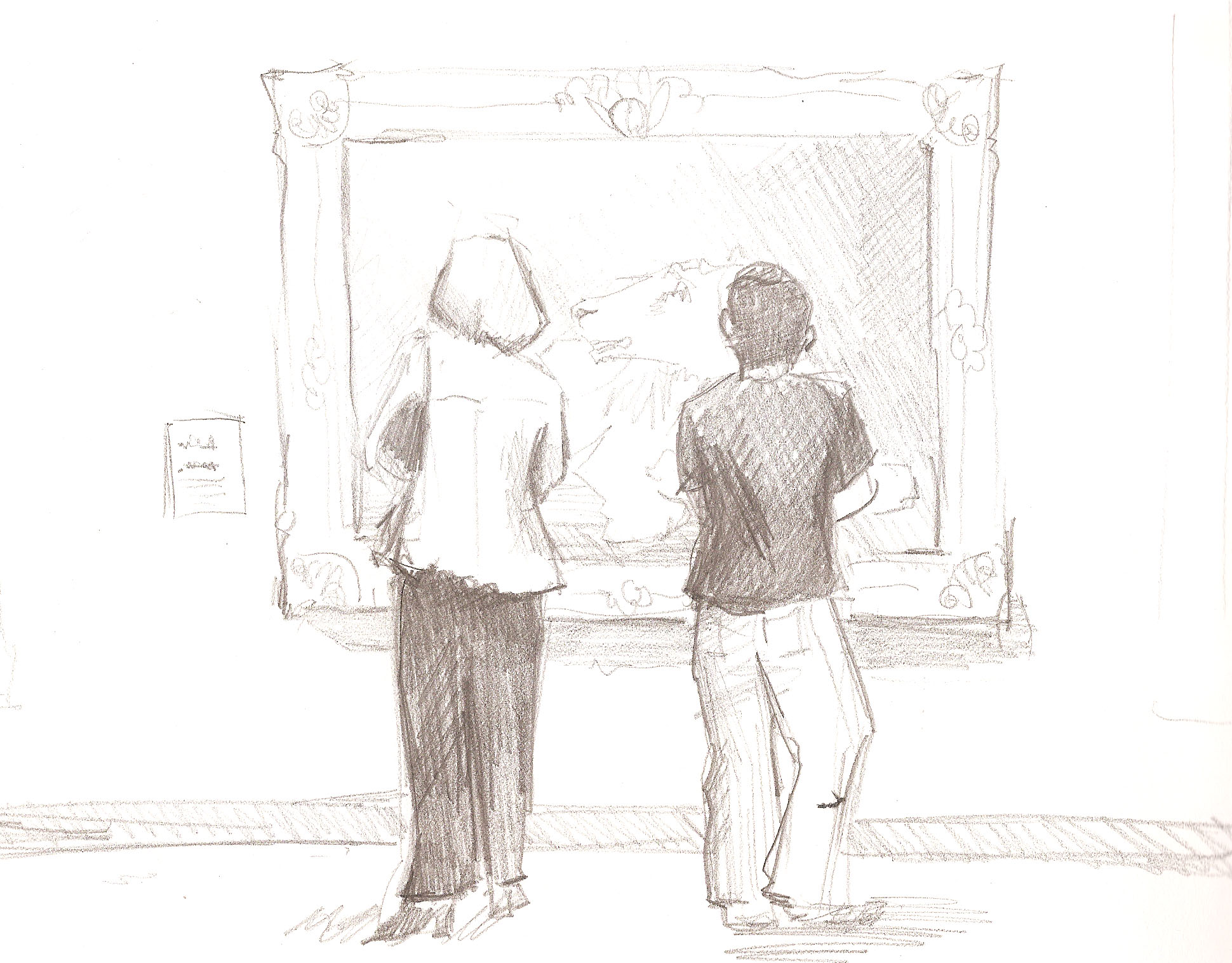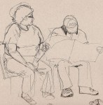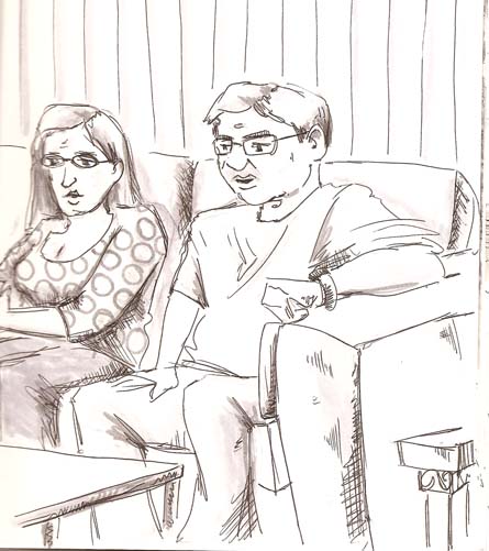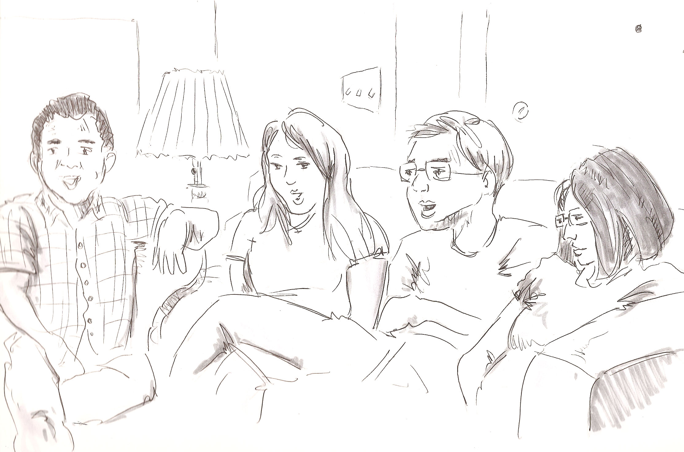 This first drawing is of my two friends Manny and Janet (aka Manet) done one night when we were all playing games and laughing and having a good time. As you can see, I did not exactly capture the joy of the evening.