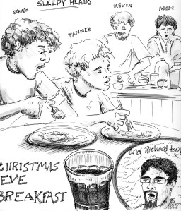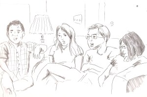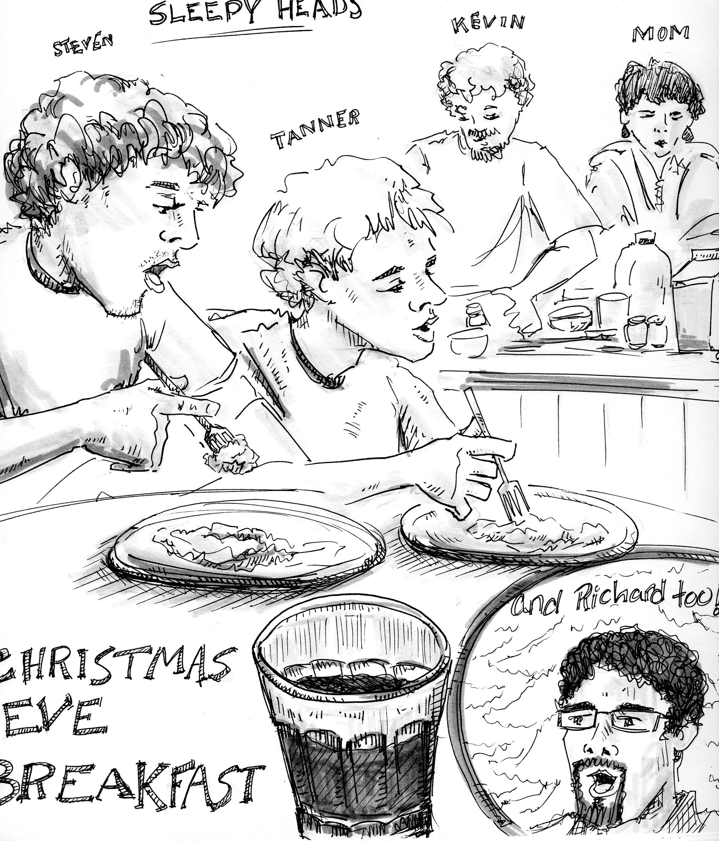 Here is another drawing of Manet (along with my other friends Demis and Nicole) from another night when we were all laughing and playing games and having a good time.