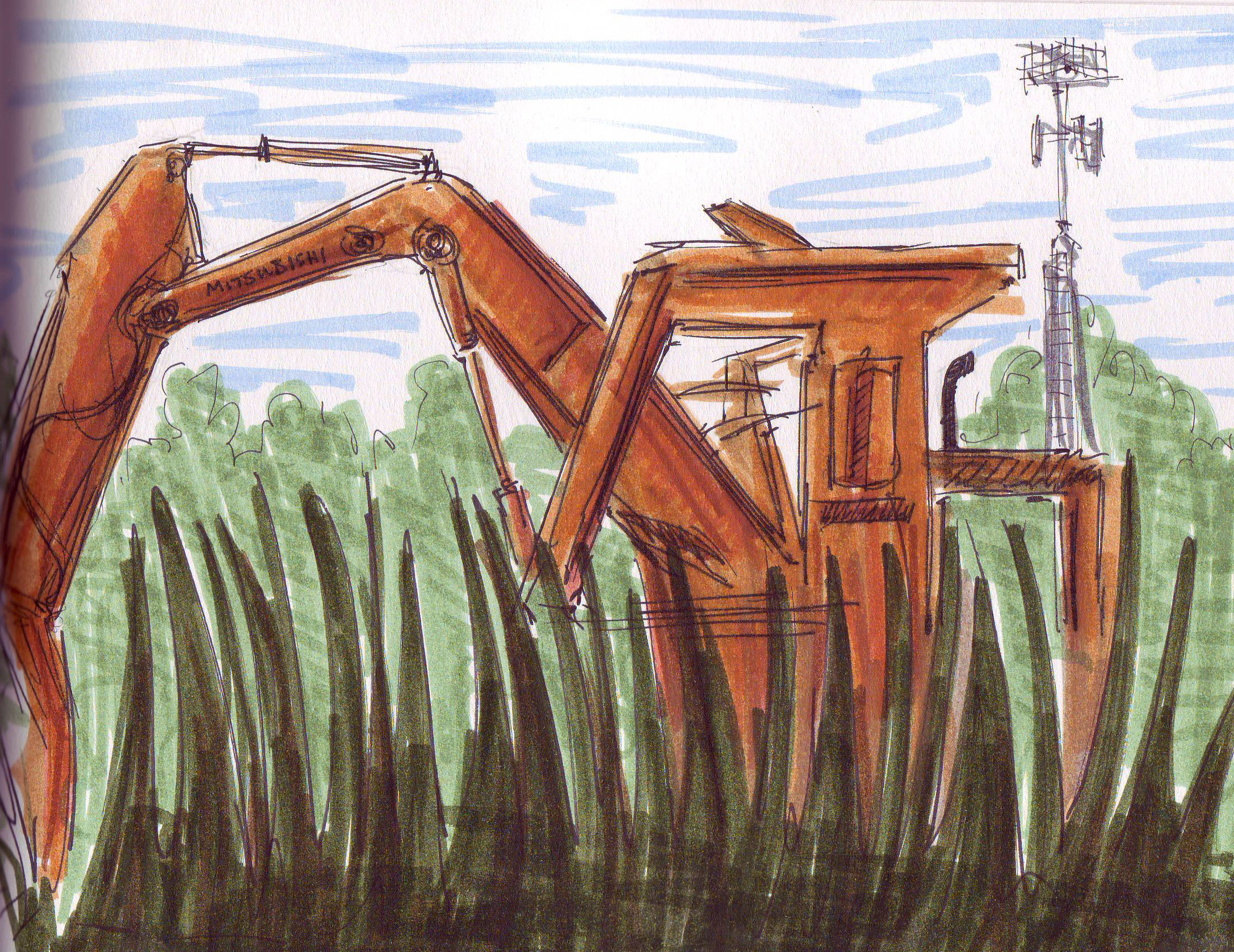 I went back to my home state of SoDak in early September. I brought along this new sketchbook that came free with a package of colored pencils. Both the sketchbook and the pencils were of cheap quality so it really wasn’t that much of a deal. But the sketchbook has this little pocket in the back, and a band that wraps around the outside, AND this built in ribbon thing to mark your page. So with all those accessories I keep thinking I love the book, but actually I don’t because the paper is too slick and makes for not so brilliant drawings. But whatever. Here they are…