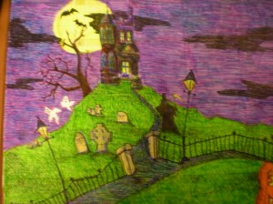 For some real cool haunted house paintings check out The Haunted Studio. Local artist Lew Lehrman takes pictures of people’s homes and turns them into these spookishly cool haunted house scenes.