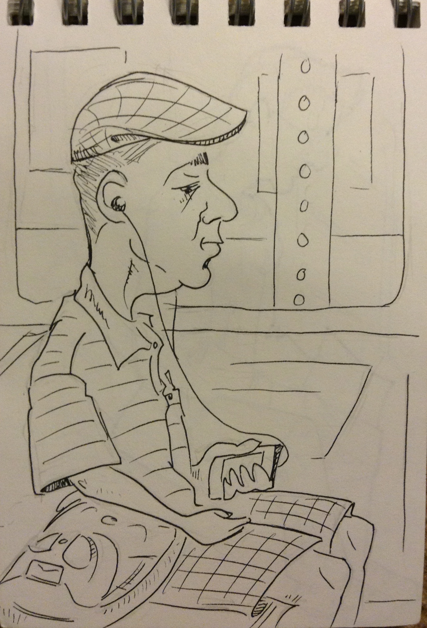 The sketches that came out of this experiment didn’t usually look that much like their real-life counterpart, but they had way more character than my typical gestures drawings, and they made the whole trip a lot more fun. I named them “Train People” and started giving them their own back-stories.