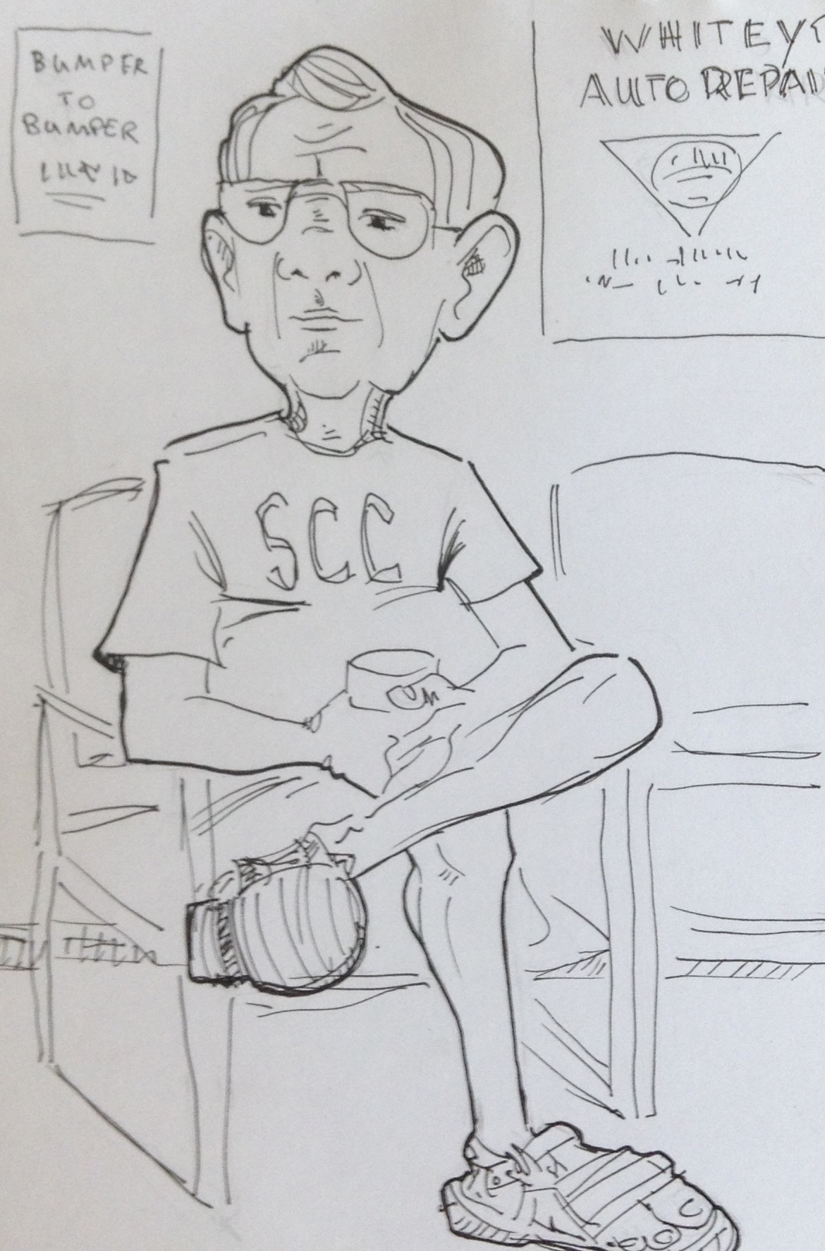 And here we have a dude in the lobby of Whitey’s Auto Repair. Arizonians rarely pass up an opportunity to wear ugly sandals, and I rarely pass up an opportunity to document it.