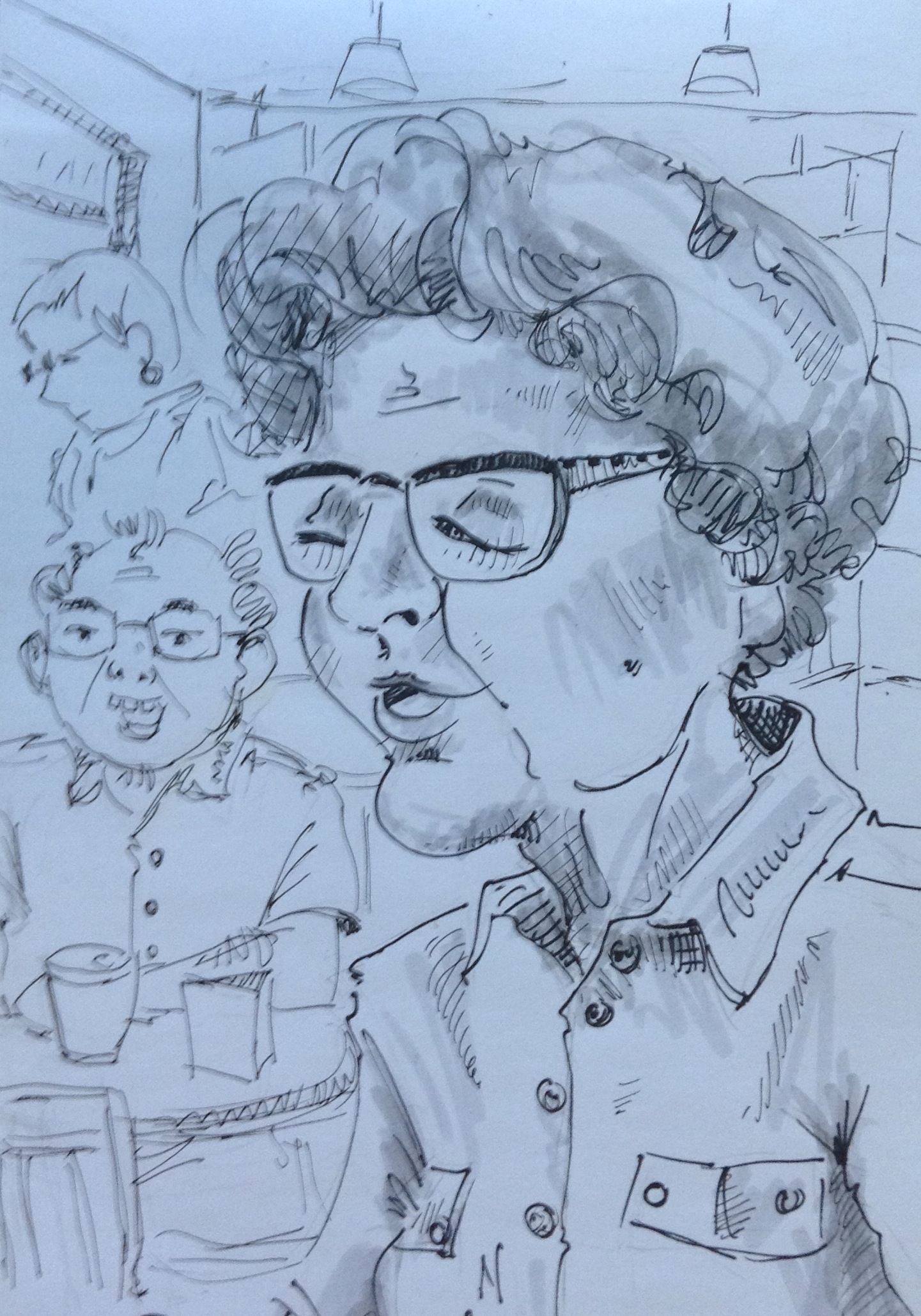 So here’s an oldster that I sketched on the DL while spying from another booth at Famous Dave’s.
