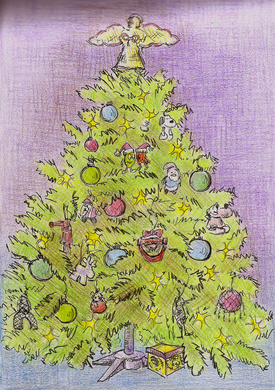 My annual tannenbaum drawing. Every year I try to make it look different from previous years, and yet every year they all look about the same. I tried to be a little looser and sketchier this year, but… all my stuff is loose and sketchy. Maybe next year I will try to be more precise.